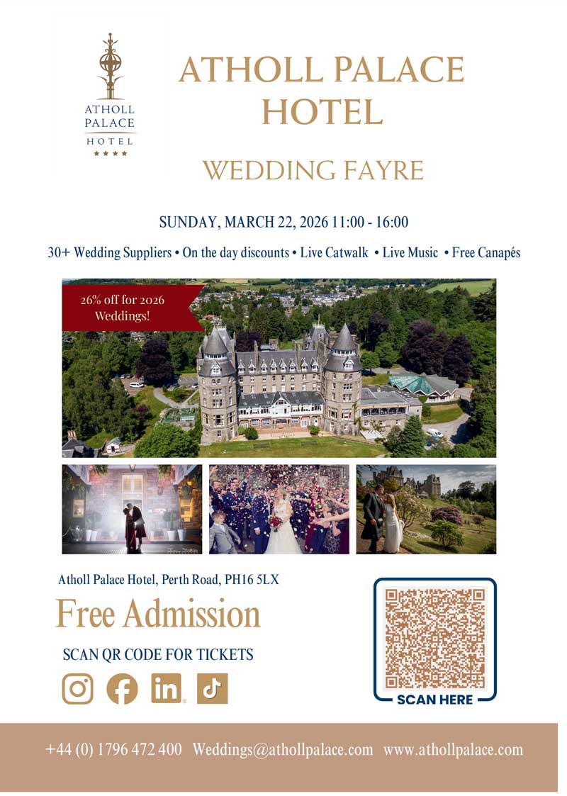 Our Wedding Fayre In Pitlochry Dreaming of your perfect wedding day? Join us at the stunning Atholl Palace Hotel for our Wedding Fayre and take the first step toward turning your vision into reality. Nestled in the breathtaking Scottish Highlands, our 4-star venue offers the ideal setting for a celebration filled with romance and elegance. Enjoy complimentary canapés […]