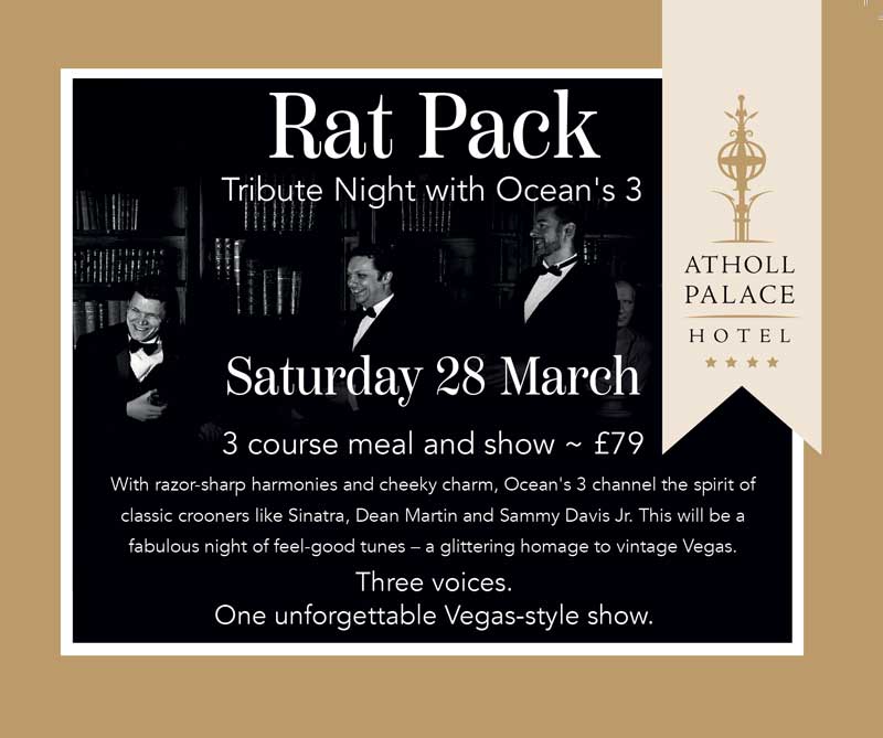 Rat Pack Tribute Night Saturday, 28th March 2026 Join us at Atholl Palace Hotel for a great night of Vegas-style entertainment with our Rat Pack Tribute Night on Saturday, 28th March 2026. Three Voices. One Unforgettable Vegas-Style Show. Bringing the smooth sounds and swagger of the Rat Pack and beyond, Ocean’s 3 channel the legendary […]